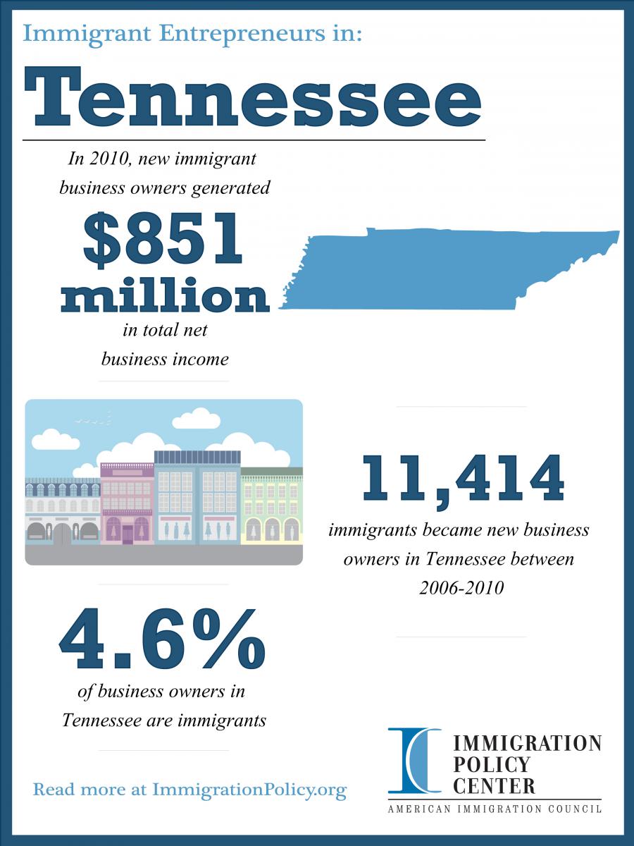 - From 2006 to 2010, there were 15,369 new immigrant business owners in Tennessee, and in 2010, 7.2 percent of all business owners in Tennessee were foreign-born.