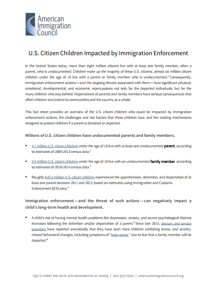 Deportations of parents and family members have serious consequences that affect children and extend to communities and the country as a whole.